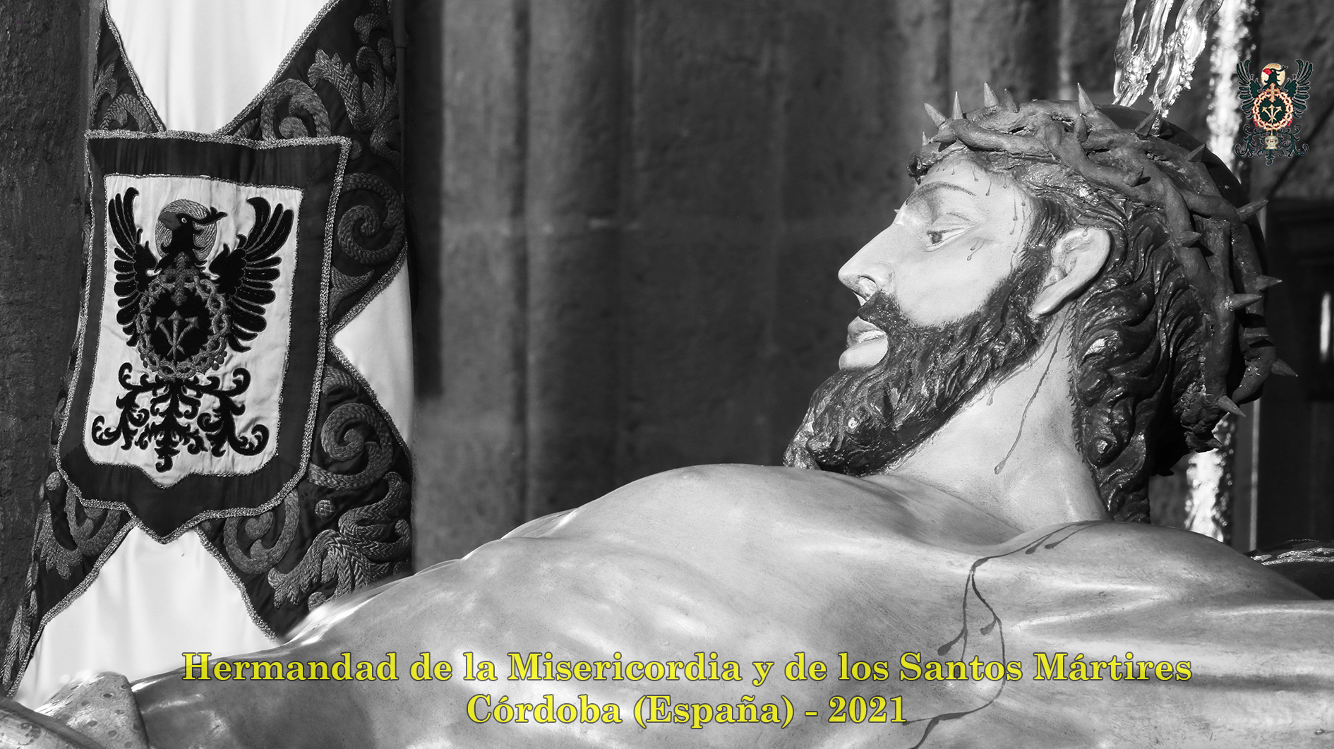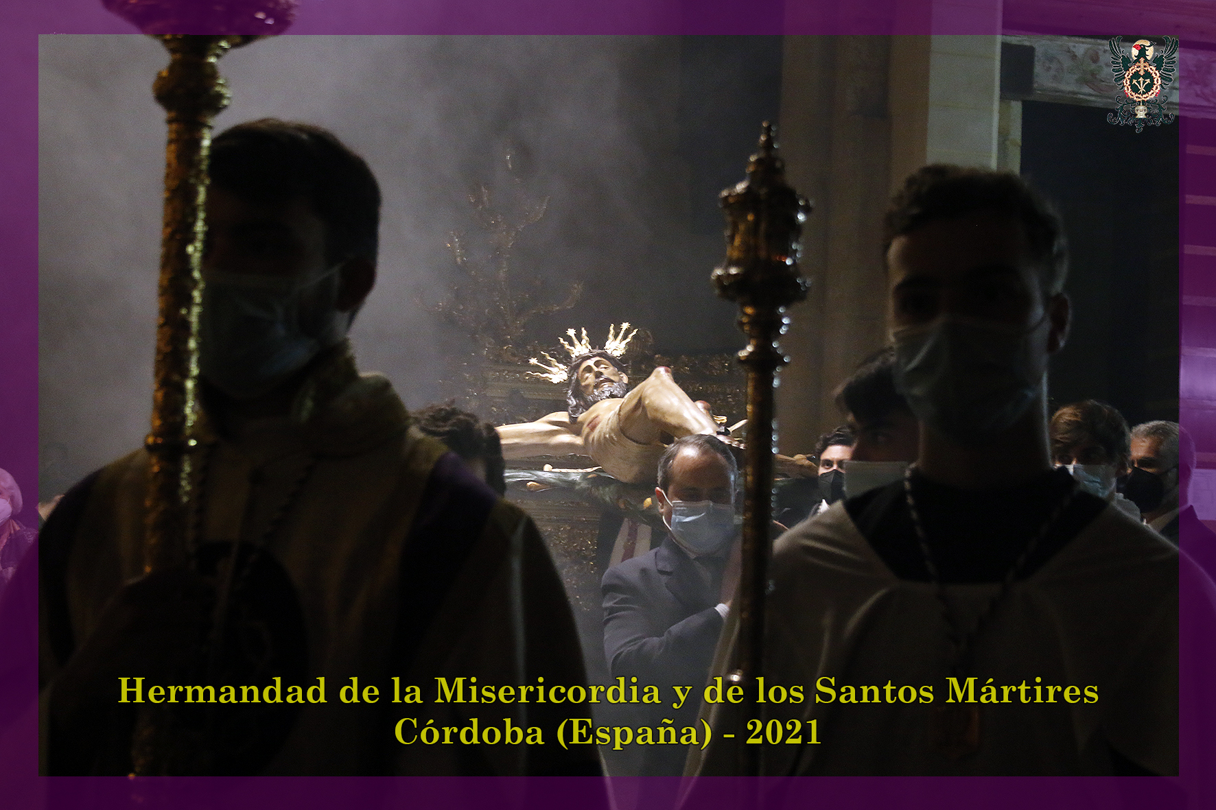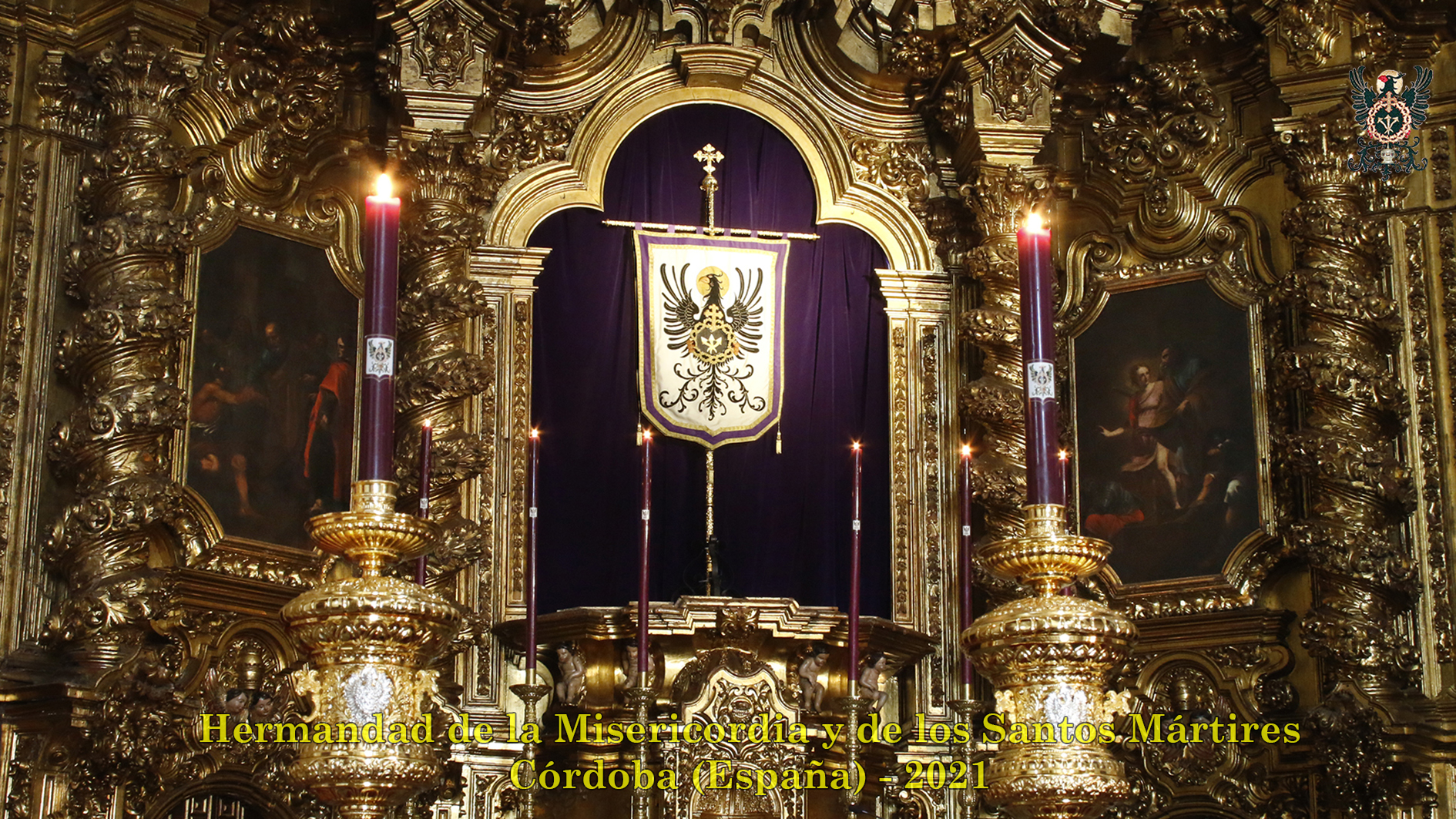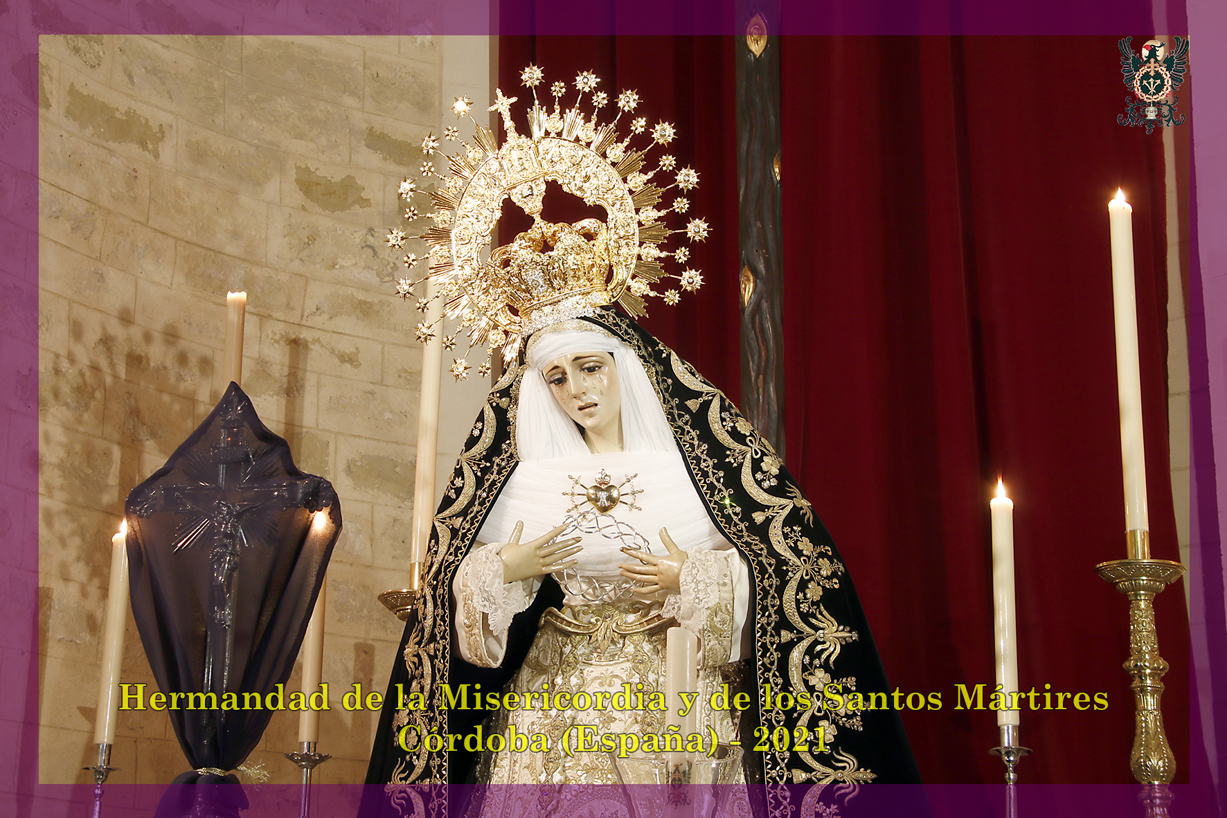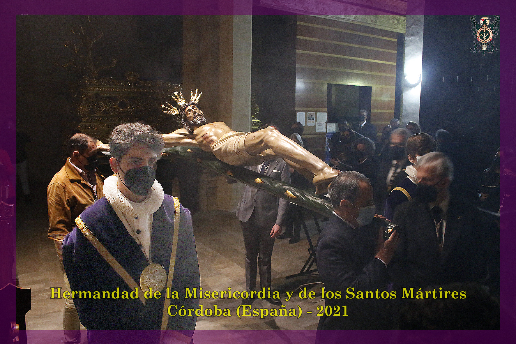 Durante todo el día estuvo expuesta a la veneración de los fieles y hermanos, aunque no se pudieran besas sus pies, la sagrada imagen del Santísimo Cristo de la Misericordia. En una presentación elegantísima, preparada por el equipo de Mayordomía, destacaba la centralidad del Crucificado, entre un sobrio exorno de flores y cirios morados, con el escudo de armas en la hornacina central del retablo mayor.