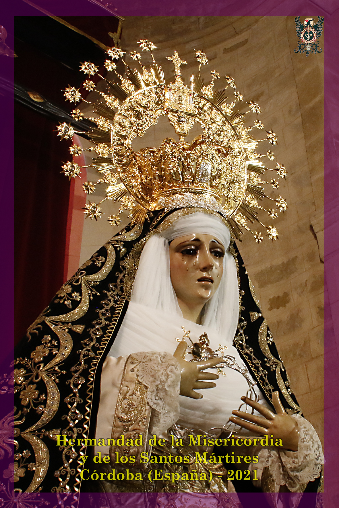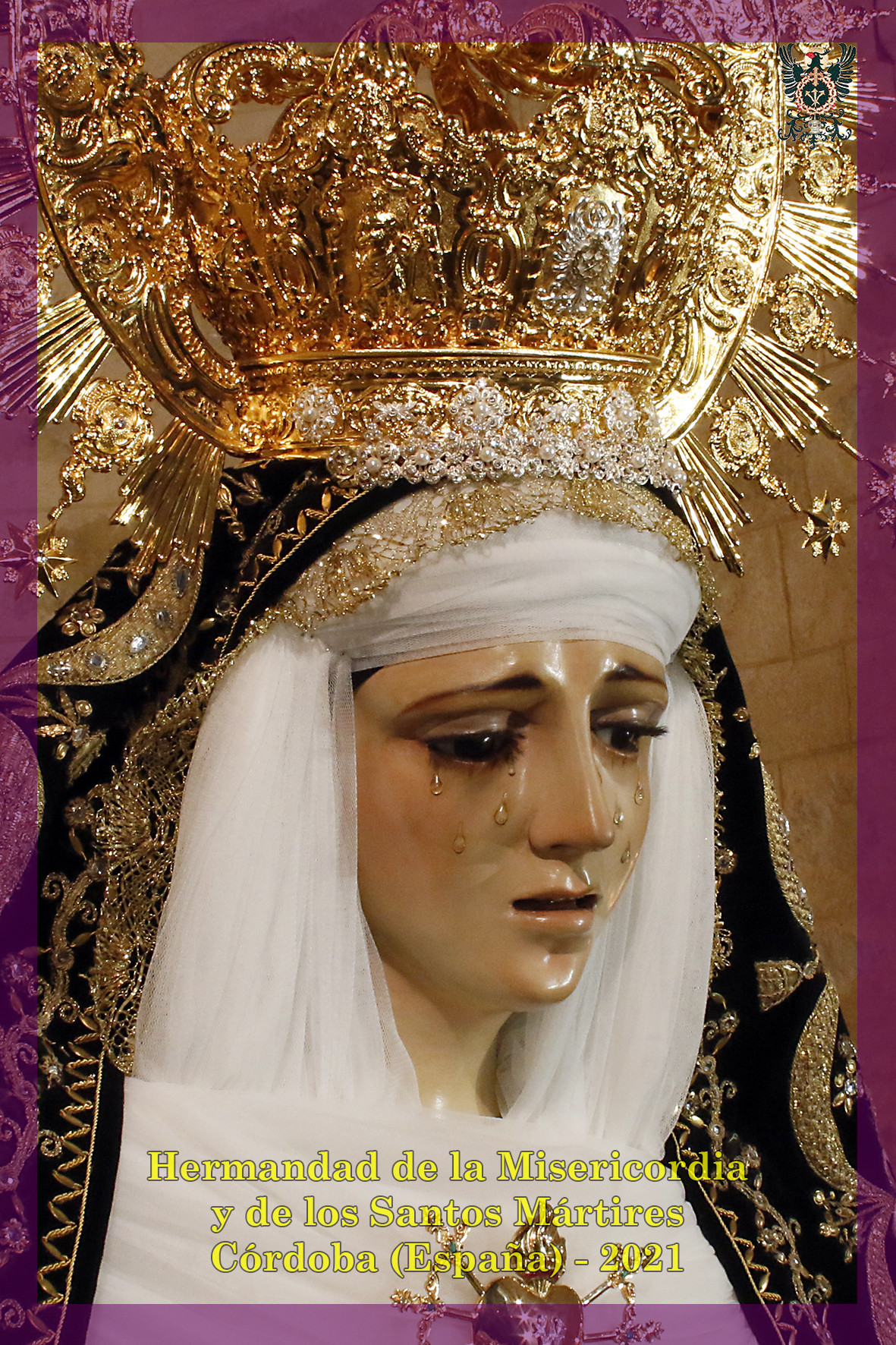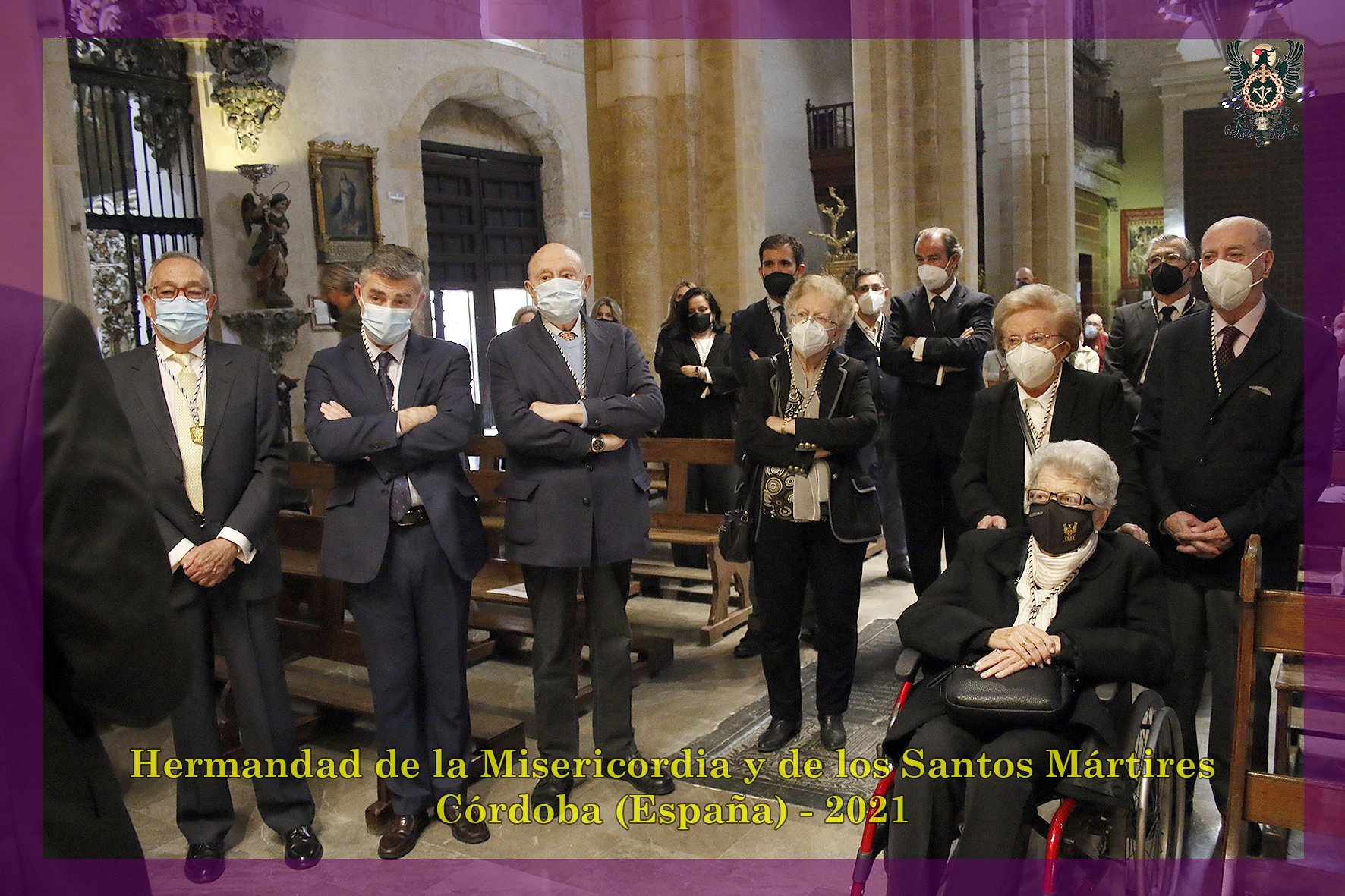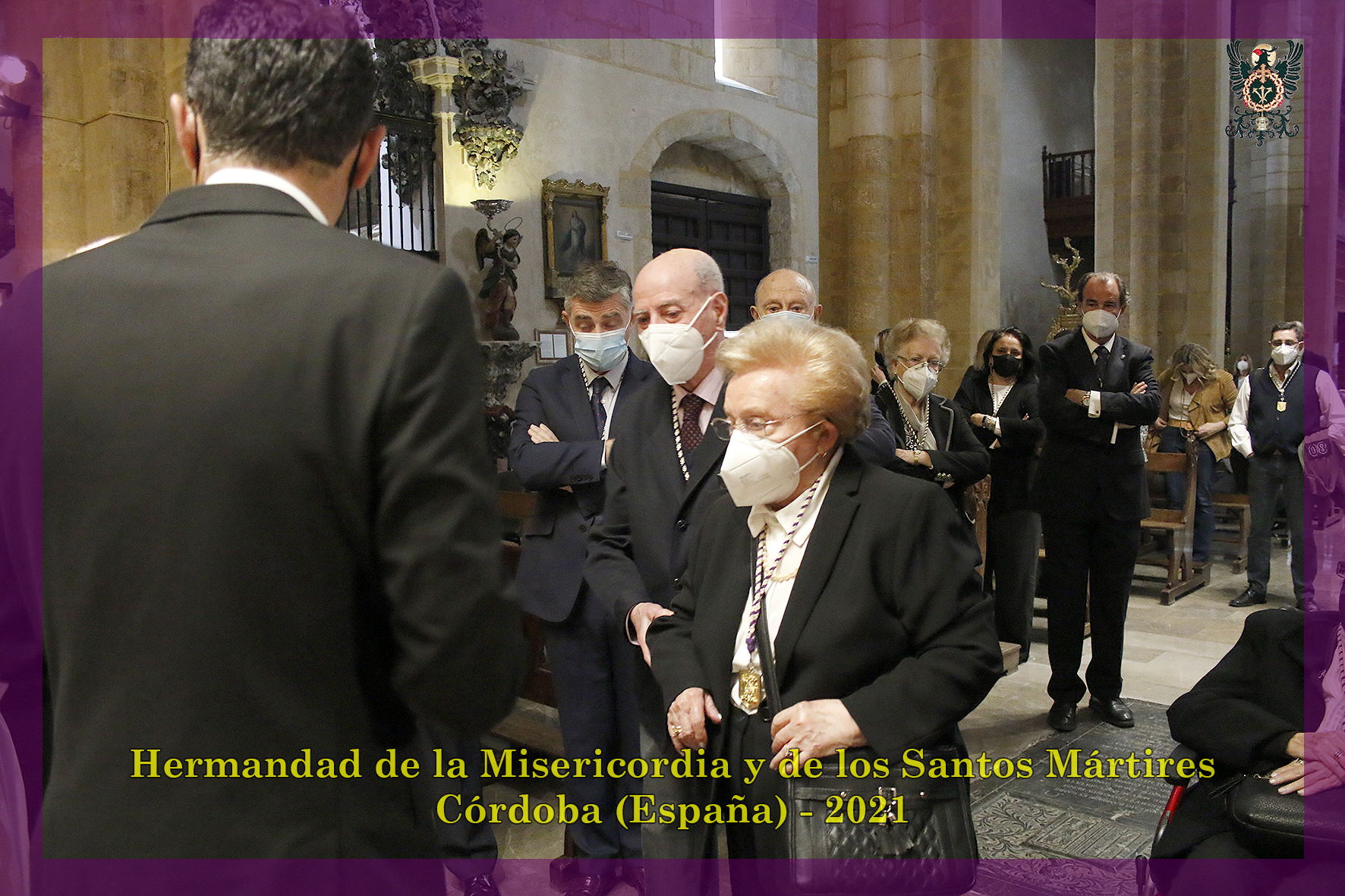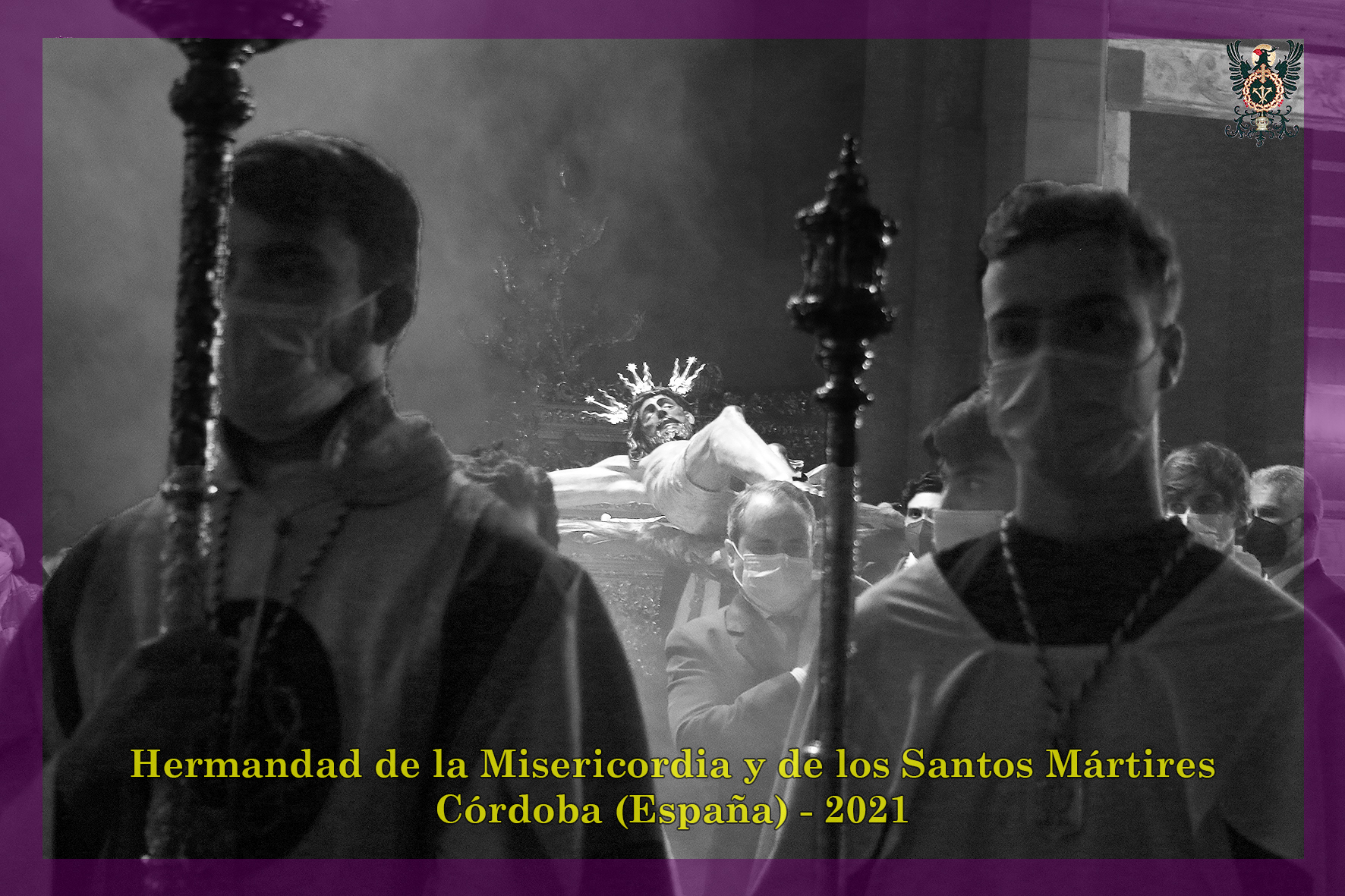 Durante todo el día estuvo expuesta a la veneración de los fieles y hermanos, aunque no se pudieran besas sus pies, la sagrada imagen del Santísimo Cristo de la Misericordia. En una presentación elegantísima, preparada por el equipo de Mayordomía, destacaba la centralidad del Crucificado, entre un sobrio exorno de flores y cirios morados, con el escudo de armas en la hornacina central del retablo mayor.
