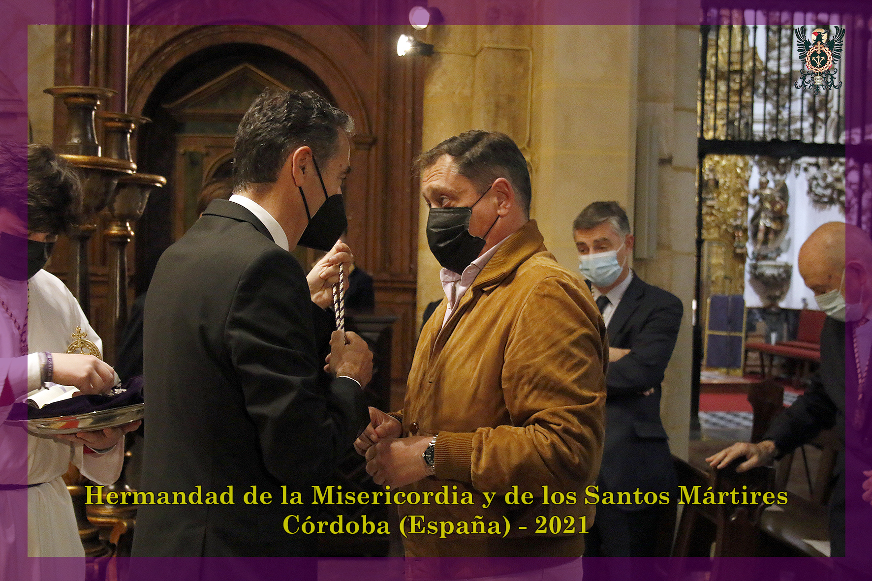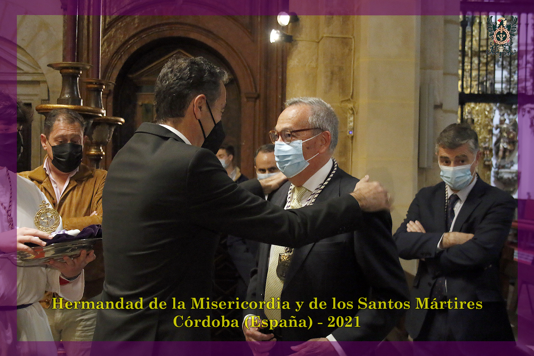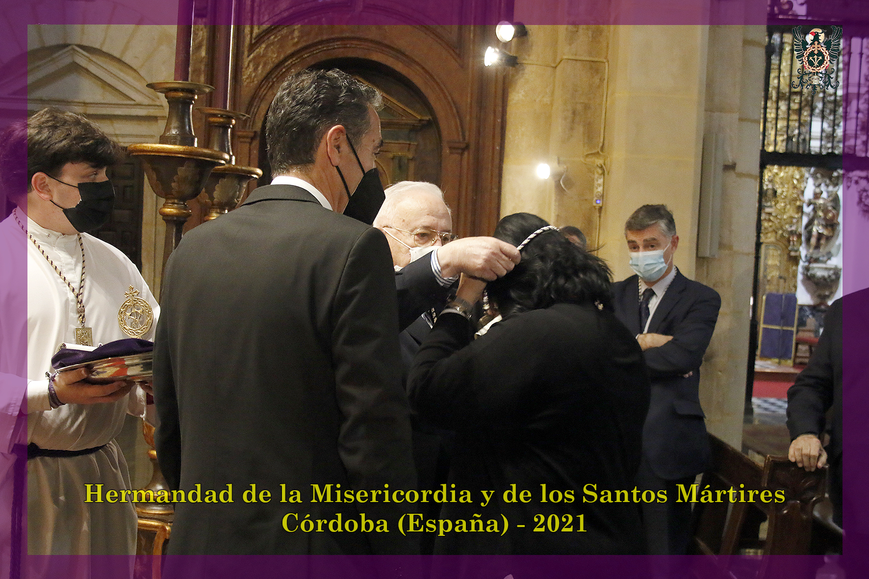 A las siete menos cuarto, se impusieron las medallas a los hermanos que el año pasado y el presente han cumplido 50 años ininterrumpidos de pertenencia a la Hermandad; en esta ocasión fue nuestro hermano Angelmaría Varo Pineda quien pronunció la oración de los hermanos veteranos antes de la celebración de la Santa Misa que ofició nuestro consiliario, Don Domingo Moreno Ramírez.