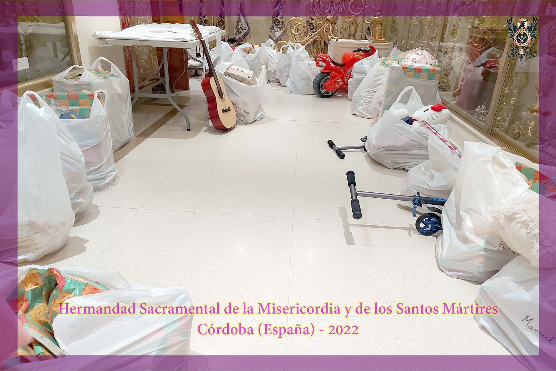 Este año han sido repartidos 44 lotes de juguetes (más del doble del año pasado) cada uno de los cuales contenía un promedio de seis juguetes, que han sido entregados a niños de las feligresías de San Pedro y Santiago, así como a hijos de mujeres en situación de riesgo acogidas en la casa "Fuente de Vida" de las Madres Adoratrices.