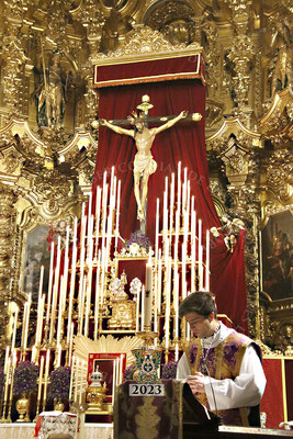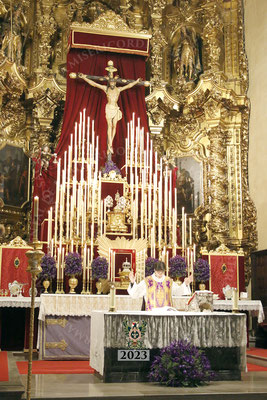 Ante un altar de cultos digno de Él, preparado por el equipo de Mayordomía, dio comienzo el Miércoles de Ceniza el solemnísimo quinario en honor del Santísimo Cristo de la Misericordia.