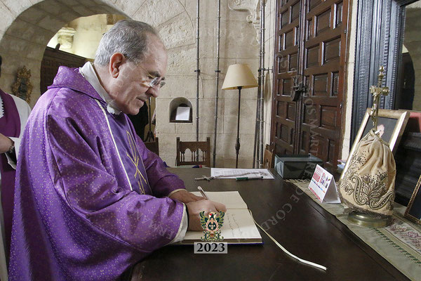 Finalmente, y antes de despedirse, el arzobispo emérito de Sevilla firmó en el libro de honor de nuestra Hermandad.