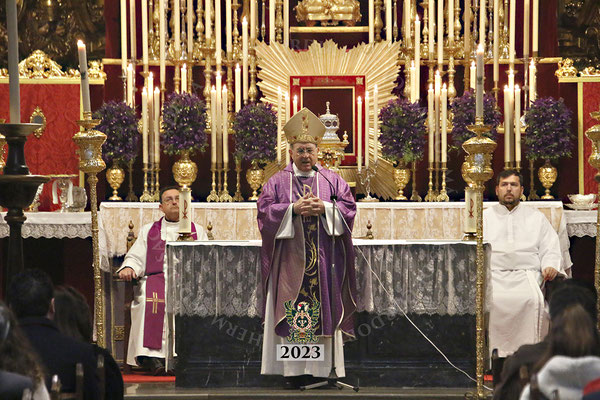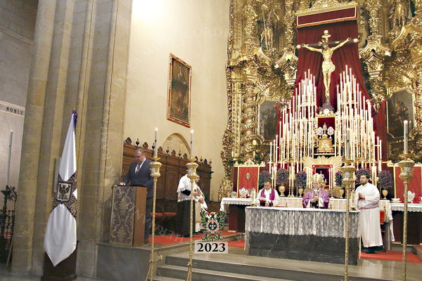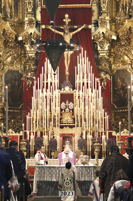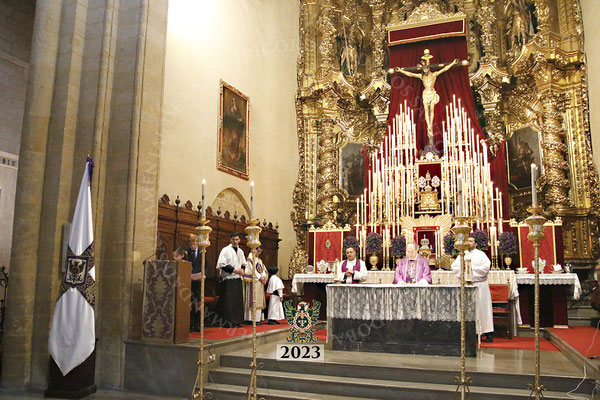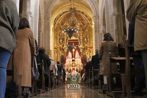 La Santa Misa, que fue ilustrada musicalmente por nuestra Capilla Musical, revistió gran solemnidad y contó con la presencia de numerosos invitados, representantes de la Agrupación de Cofradías y de otras Hermandades, así como por varios centenares de hermanos que llenaron el aforo del templo.