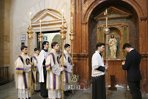 Como ordena la liturgia, la Santa Misa incluyó la imposición de la Ceniza, con el recuerdo de la fragilidad del mundo y la llamada a la conversión, basada en el trípode de limosna, oración y ayuno. Este año, además, el Miércoles de Ceniza tuvo una prolongación con la presencia en la Basílica de San Pedro de la querida Hermandad de la Esperanza que, dentro del Via Crucis a su titular Nuestro Padre Jesús de las Penas, quiso hacer una de las estaciones en nuestra Capilla del Sagrario y de los Santos Mártires, para unirse al 350 aniversario fundacional de la Cofradía de los Santos Mártires de San Pedro.