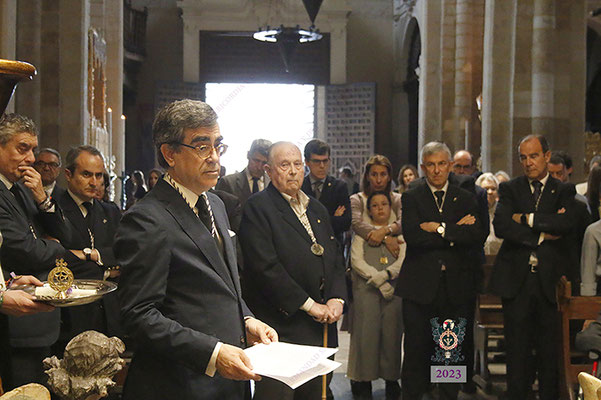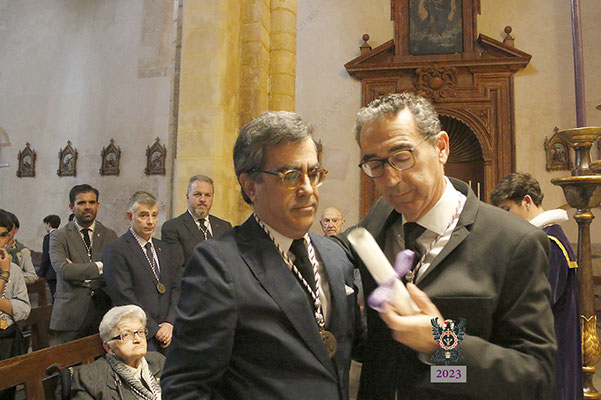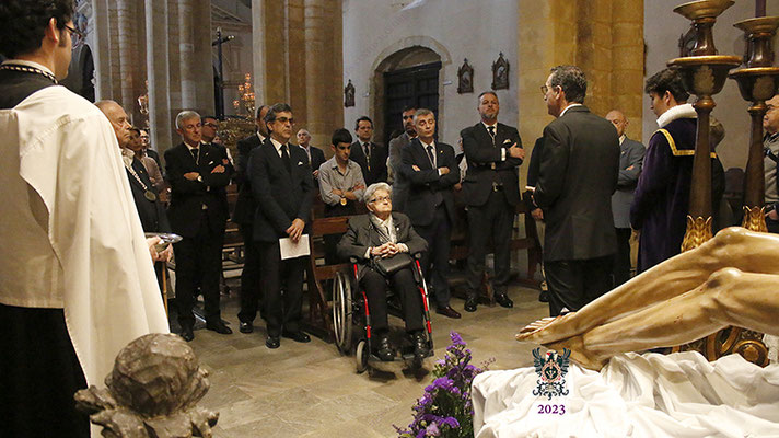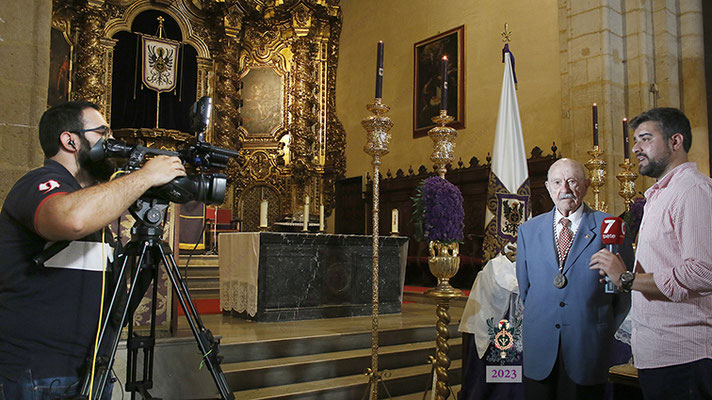 Poco antes de las ocho de la tarde, se hizo entrega a N.H.D. Álvaro Pineda Lucena de la medalla conmemorativa de sus bodas de oro como hermano de nuestra corporación. El mismo hermano realizó una emocionante oración, junto a los cofrades veteranos, ante el Santísimo Cristo de la Misericordia.