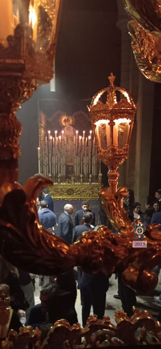 Tras el Santo Sacrificio, se formó el cortejo con más de cien hermanos portando cirios para rezar el Via Crucis en el interior de la Basílica, en un ambiente de silencio, solemnidad, recogimiento y oración en el que el rezo y la meditación de las catorce estaciones se alternaba con la interpretación de motetes penitenciales clásicos por parte de la Capilla Musical de nuestra Hermandad.