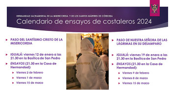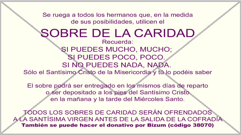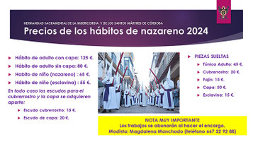 Se recomienda a los hermanos que reserven sus papeletas de sitio a través del correo electrónico dmgmisericordiacordoba@gmail.com antes del 25 de febrero, con el fin de facilitar el reparto de dichas papeletas. La recogida de las mismas se hará los días 28 y 29 de febrero y 1, 2, 8 y 9 de marzo.