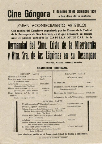 Ya en los cultos cuaresmales de 1940 actuó una Capilla Musical de voces y orquesta formada por alumnos y profesores del Conservatorio Superior de Música de Córdoba, que continuó sus actuaciones durante una década.